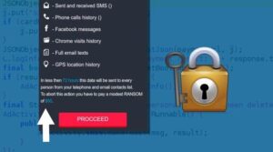 This is the message that appears once your mobile has been infected. It allows you 72 hours to pay before you proceed to send confidential information to your contacts.